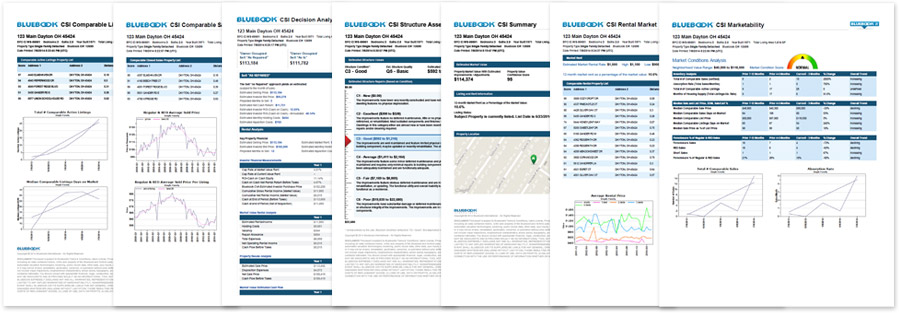 The Bluebook CSI Suite of reports provide lenders, investors and property owners the advantage of an up front property valuation in just minutes.
